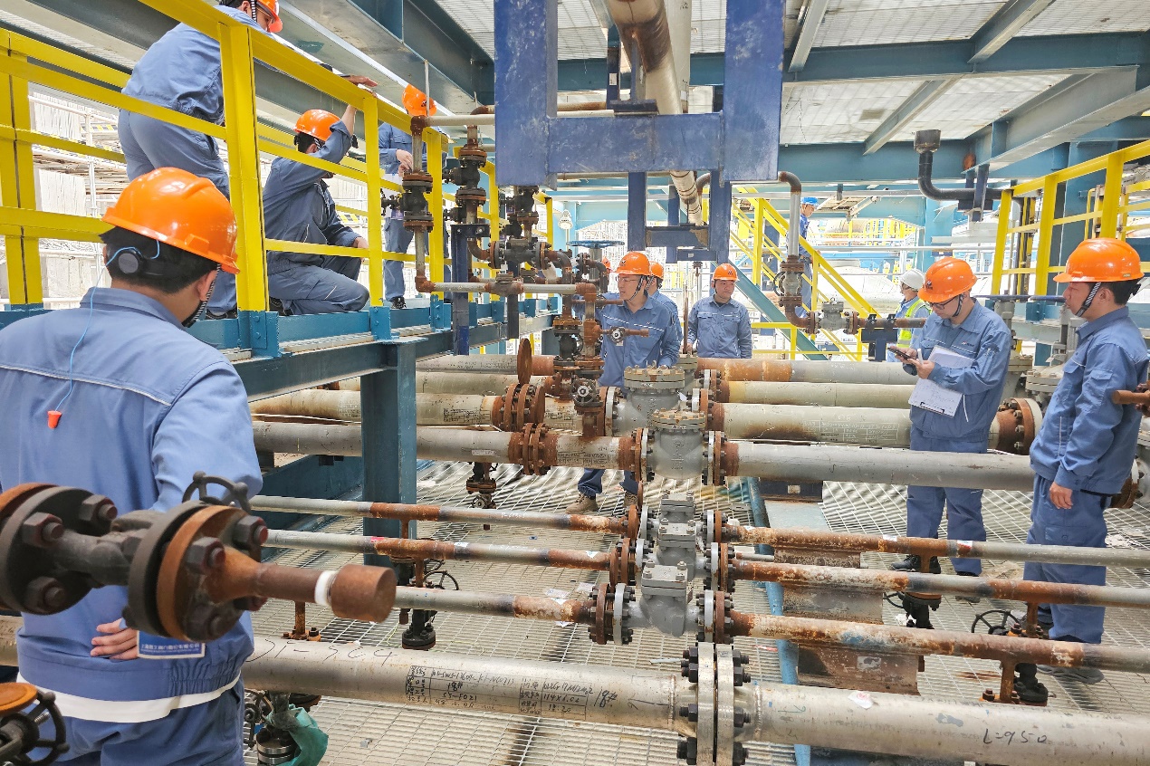 暮色漸沉,當(dāng)現(xiàn)場(chǎng)的施工聲逐漸消退,沸騰床渣油加氫裝置現(xiàn)場(chǎng)依然活躍著一群年輕的身影,他們利用下班后的時(shí)間開展“現(xiàn)場(chǎng)研學(xué)”。為提升培訓(xùn)效果,團(tuán)隊(duì)采用“分組帶隊(duì)、專人講解、互動(dòng)提問”的方式,他們時(shí)而駐足凝視,時(shí)而低頭記錄,對(duì)照著復(fù)雜的流程圖,熟悉各條流程的走向,記錄各類設(shè)備和閥門的具體位置,掌握各項(xiàng)操作的關(guān)鍵要點(diǎn),討論每一個(gè)細(xì)節(jié),生怕遺漏任何關(guān)鍵知識(shí)點(diǎn)。