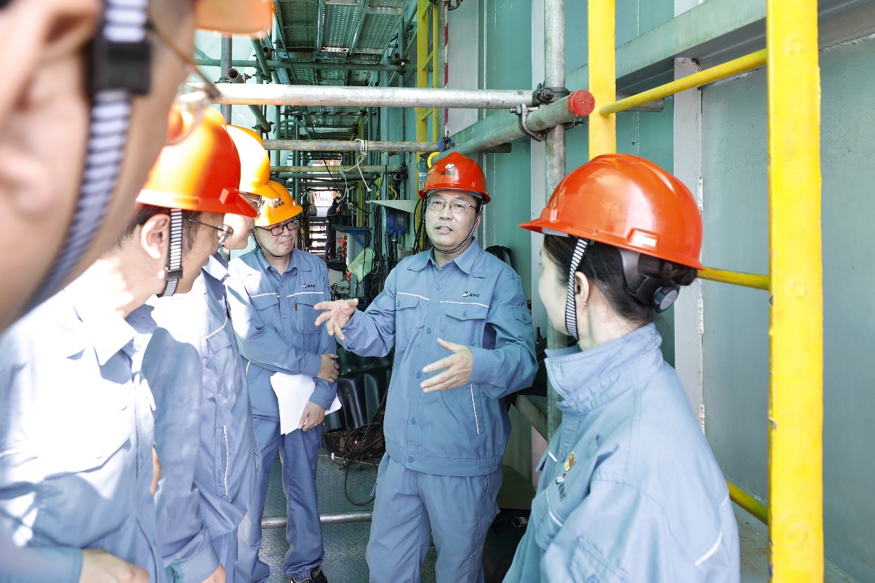 7月24日,集團(tuán)黨委書記、董事長徐建平深入福海創(chuàng)檢修現(xiàn)場,實(shí)地了解裝置檢維修、開工合攏及安全生產(chǎn)工作,并參加福海創(chuàng)檢修碰頭會(huì)。