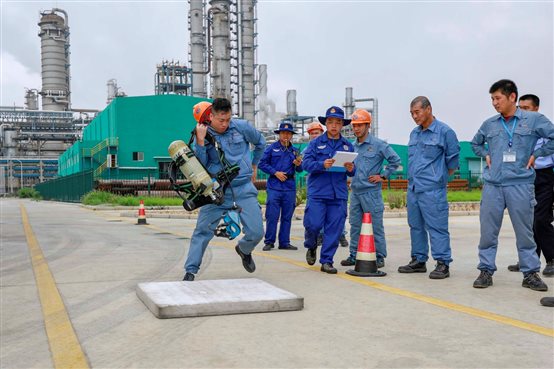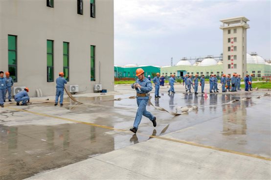 競賽前,QHSE部消防安保團(tuán)隊(duì)組織員工進(jìn)行正壓式空氣呼吸器佩戴,射水打靶,滅火器使用,油盆滅火等消氣防項(xiàng)目技能培訓(xùn),讓員工進(jìn)一步掌握并提升各類應(yīng)急器材的使用技能。