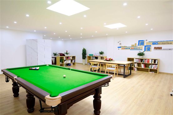 三樓為休閑閱讀室。設(shè)置有臺(tái)球區(qū)、閱讀角、放松休閑區(qū)等。