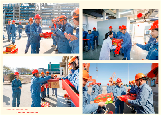 徐建平一行先后來到芳烴中控、化驗檢測團隊、碼頭團隊等生產現場,每到一處,徐建平都與福海創(chuàng)一線干部職工親切交流,詳細了解大家的工作情況及節(jié)日安排,向他們致以誠摯問候和新春祝福,同時叮囑大家務必做好安全生產工作,確保平安祥和過節(jié)。